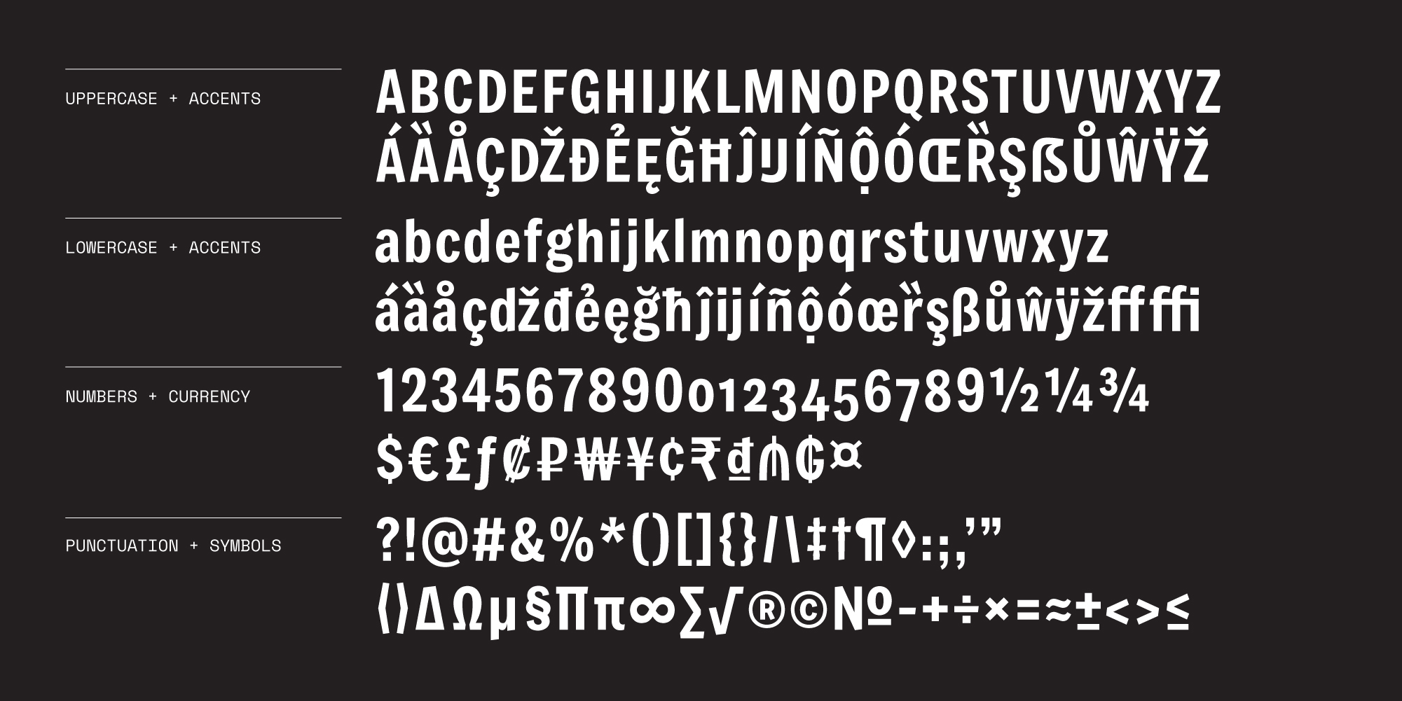 Inspirations for Francois One were taken primarily from gothic sans-serifs while injecting organic curvature and angles from more glyphic, handwritten typefaces. The typeface explores a semi-glyphic flair to the classic model that inevitably liven's up the x-height and provides a bouyant and "absurd" personality.
