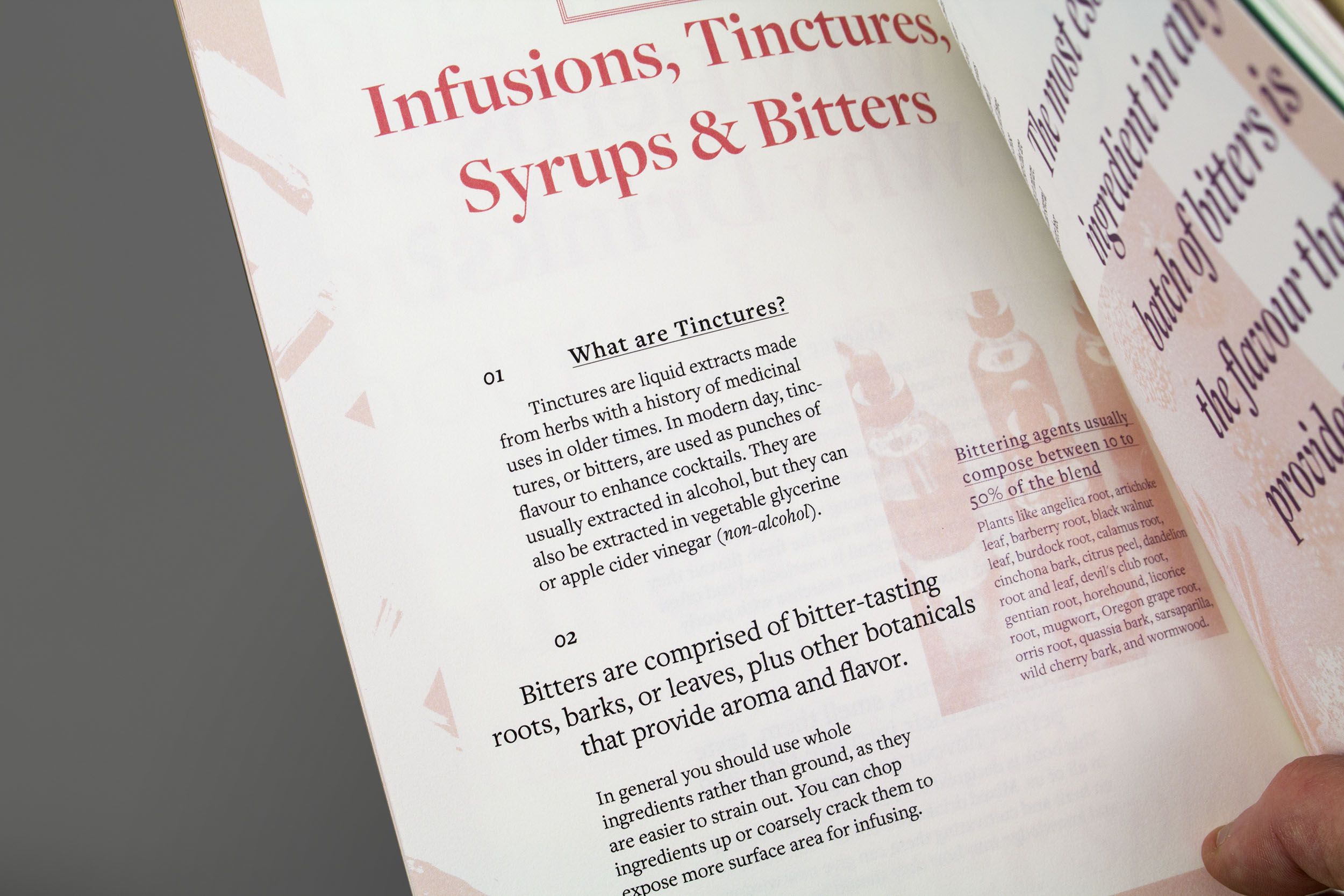 The Mixologist's Guide to Herbology is a publication that I created for myself. I documented my experience of creating an herb garden to explore diverse flavor profiles of mixed drinks. After the record of testing and executing, I challeneged myself to tell a story as reinterpret the visual vocabulary of an often trite subject.