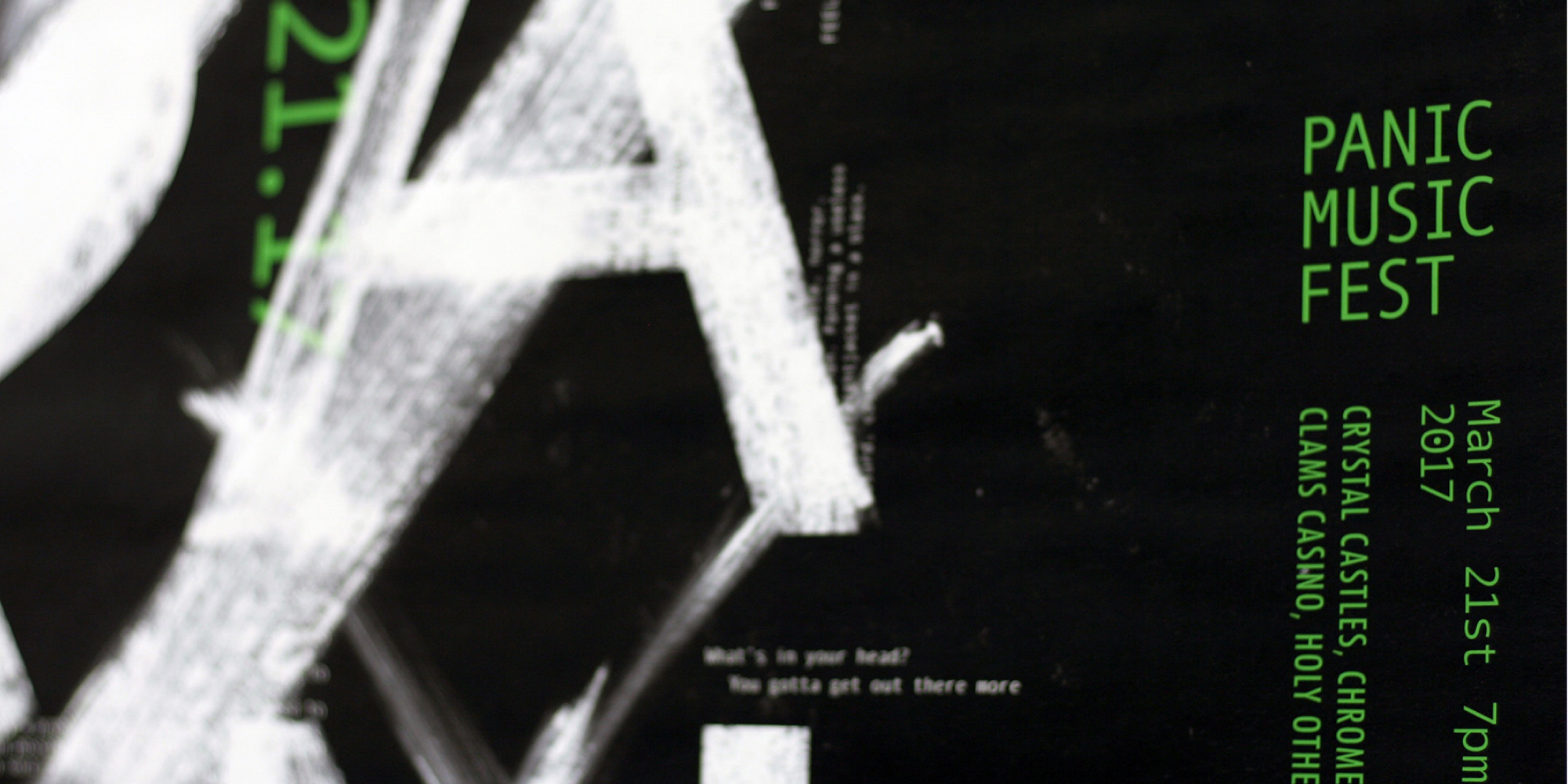 Panic Music Fest is an experimental electronic music night, hosting several dark EDM musicians. I wanted to develop a poster for the event to be primarily typographic and implement a textural quality that mimicked the emotions one would experience at such an event.